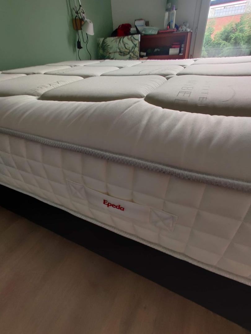 Il y a un matelas 160 x 200, un surmatelas de la même taille, et le sommier est en fait en deux partie, soit deux sommiers de 80 x 200 cm. Si possible, prévoir de quoi protéger le matelas des tâches (housse, emballage)