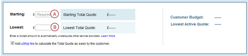 - When placing a quote, enter a Lowest Amount/Quote (B).