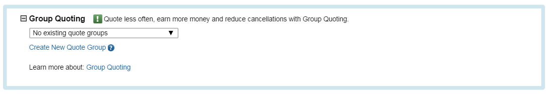 You can find Group Quoting in the Advanced Quoting section near the bottom of the quote form.