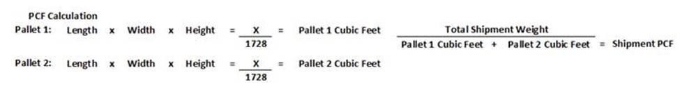 uShip determines density based freight class using the following pounds per cubic feet (PCF) equation.