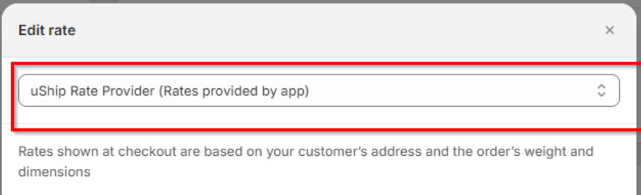 - Choose "uShip Rate Provider (Rates provided by app)" from the list