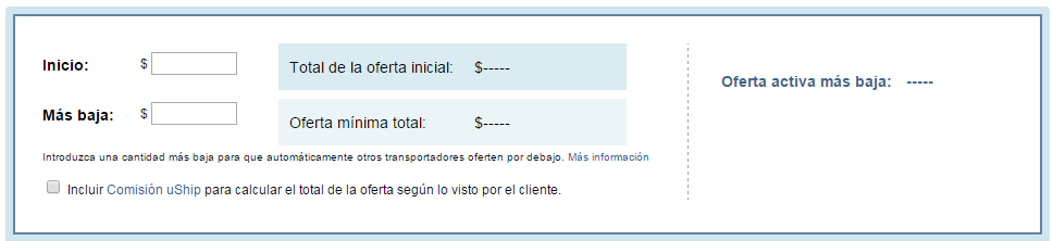 Al publicar una oferta en un anuncio tendrá la opción de establecer una oferta mas baja y tendrá la opción de dejar que el sistema automáticamente haga la oferta menos de los otros transportistas. Esto también le reducirá el precio si un cliente rechaza una oferta. Es una gran manera de hacer una oferta competitiva cuando estás en el camino.