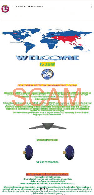 Si alguien se contacta con usted en línea con respecto a la venta de un artículo, y afirma que el artículo le será enviado a través de uShip, puede ser una estafa. El defraudador alegará que el artículo está esperando en la sede de uShip, y luego solicitará dinero para diversas demandas, vacunas (si es una mascota) o seguro, y continuará compensando los costos de envío hasta que lo descubra. Solicitarán que los pagos se realicen a través de un servicio de transferencia bancaria como WesternUnion o una criptomoneda como bitcoin.