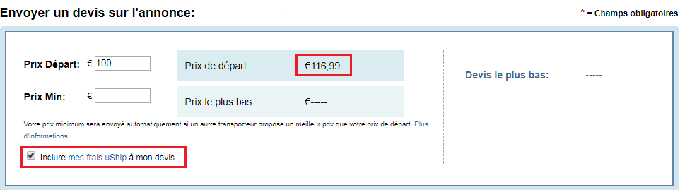 L'utilisation du site est essentiellement gratuite pour les transporteurs puisque les frais uShip des transporteurs sont automatiquement inclus dans les devis soumis :