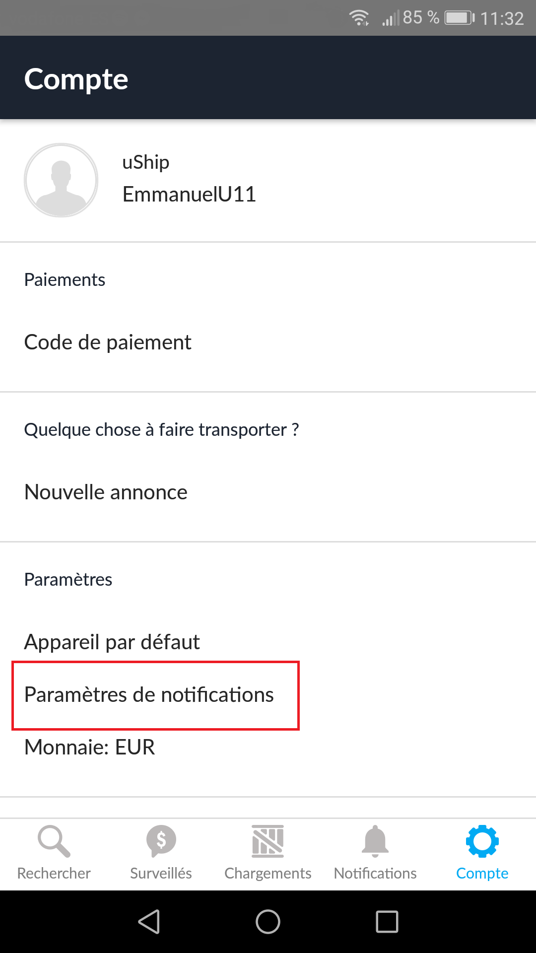 Les utilisateurs Android peuvent recevoir des notifications concernant les Chargements à proximité. Cette fonctionnalité n'est pas disponible sur iOS.