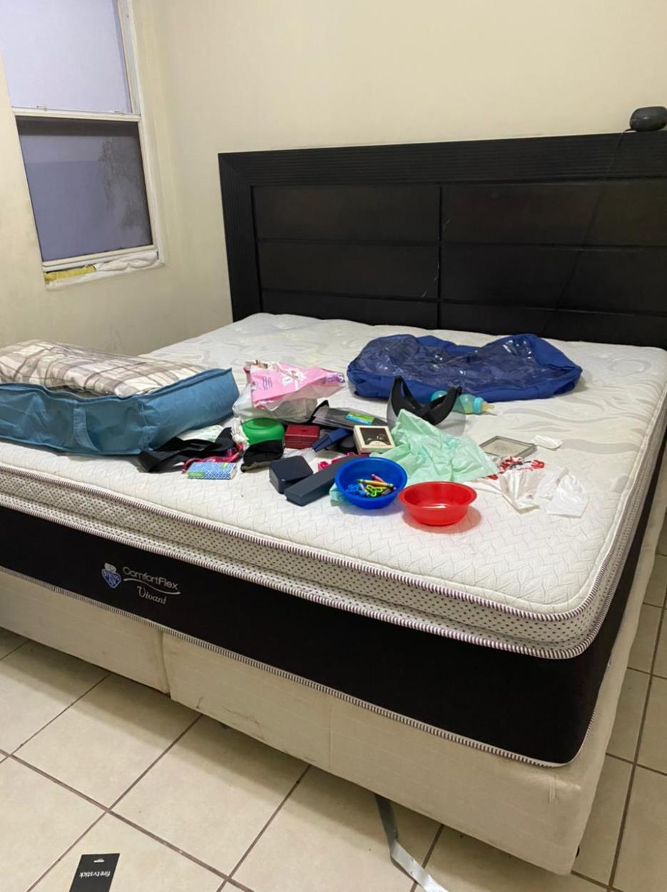 El espacio que ocupan las cajas es aproximadamente 2 M3, adicional a ello un colchon matrimonial