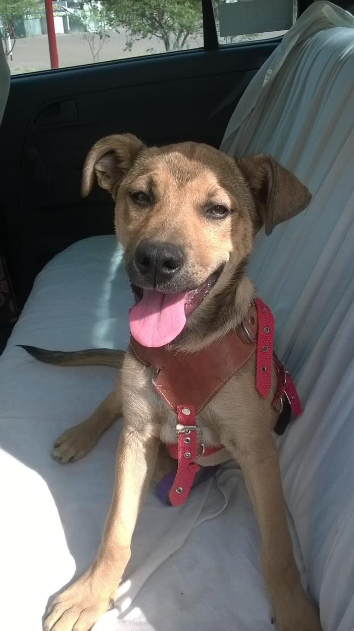 Es un perro mestizo que estoy adoptado y necesito transportarlo a toluca. Es un cachorro tranquilo y muy dulce. Llevará comida y agua, si el viaje tardará mucho es importante dejarlo caminar un poco ya que es su primer viaje largo.