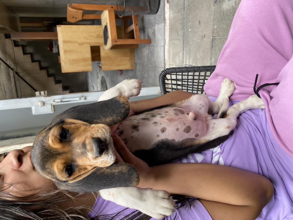 Es muy tranquila y ha viajado en coche por largas horas y en avión