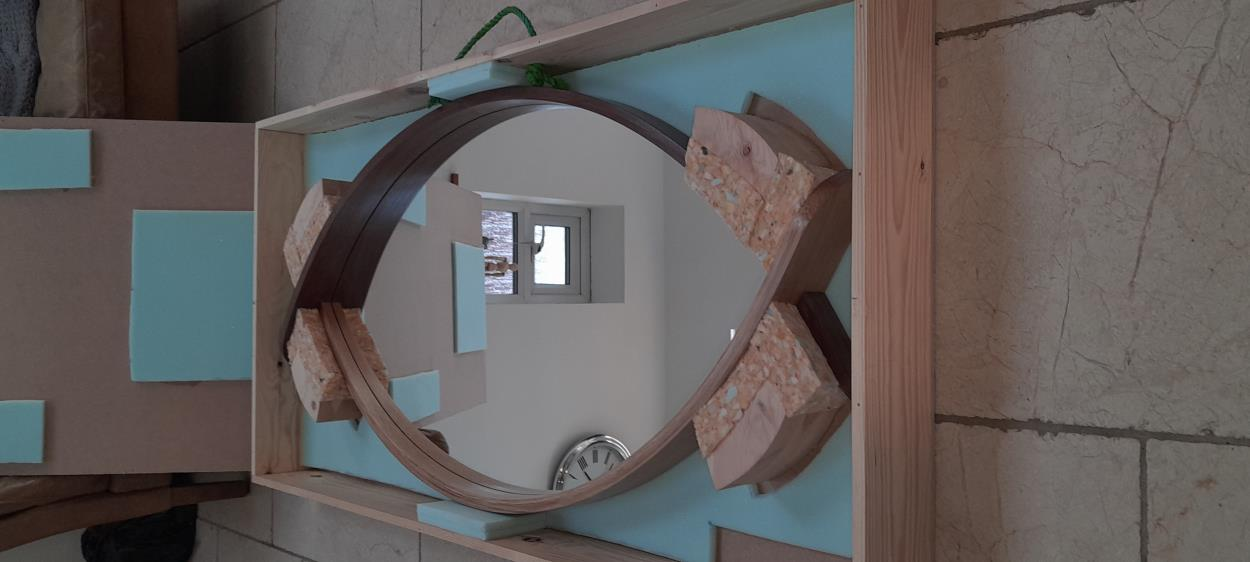 Mirror in wood frame packed in foam padded wooden
