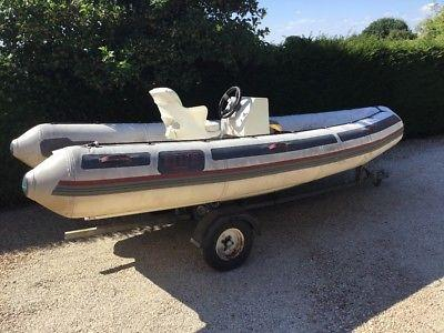 RIB is on trailer with light board and boat cover