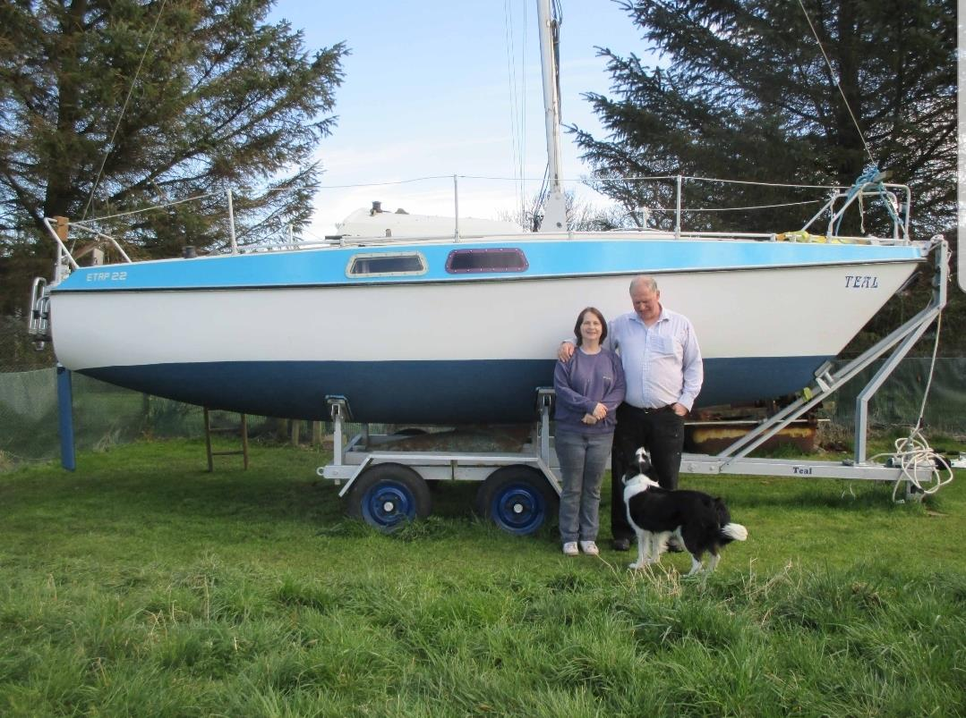 Boat has bilge keels so will sit upright and stable on a flat bed, only requiring ratchet strapping down. No covering required.