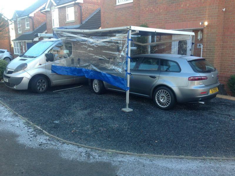 Van canopy,2 legs, 2 weights and 2 plastic sides