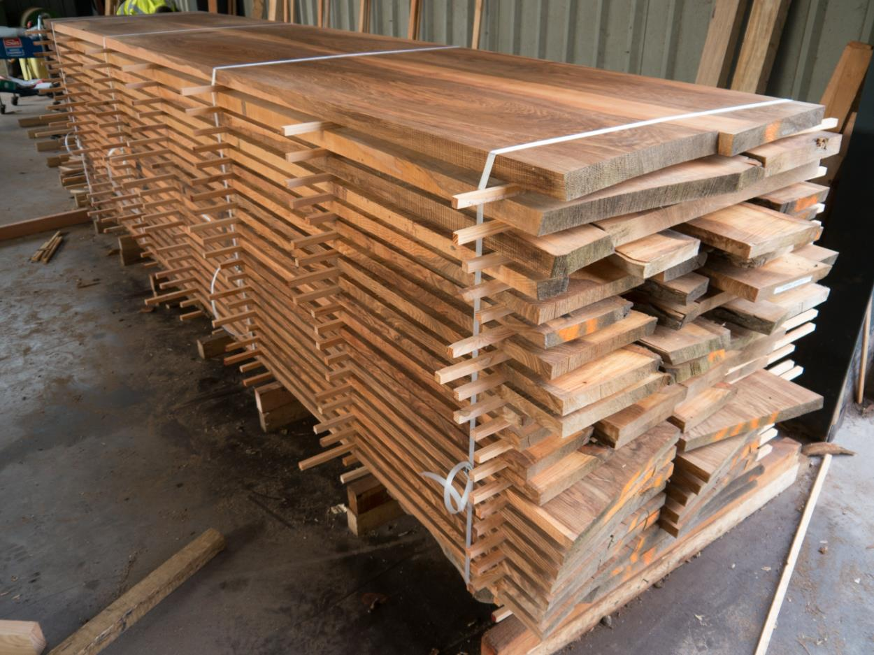 Pack of bound dry timber boards