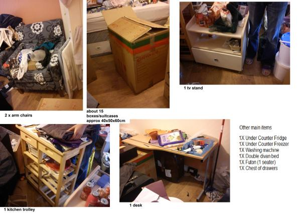there is a lot of black bags full of clothes etc as well as lots of boxes but no sofas/tables/large beds etc but the 2 units for living room are heavy!!
