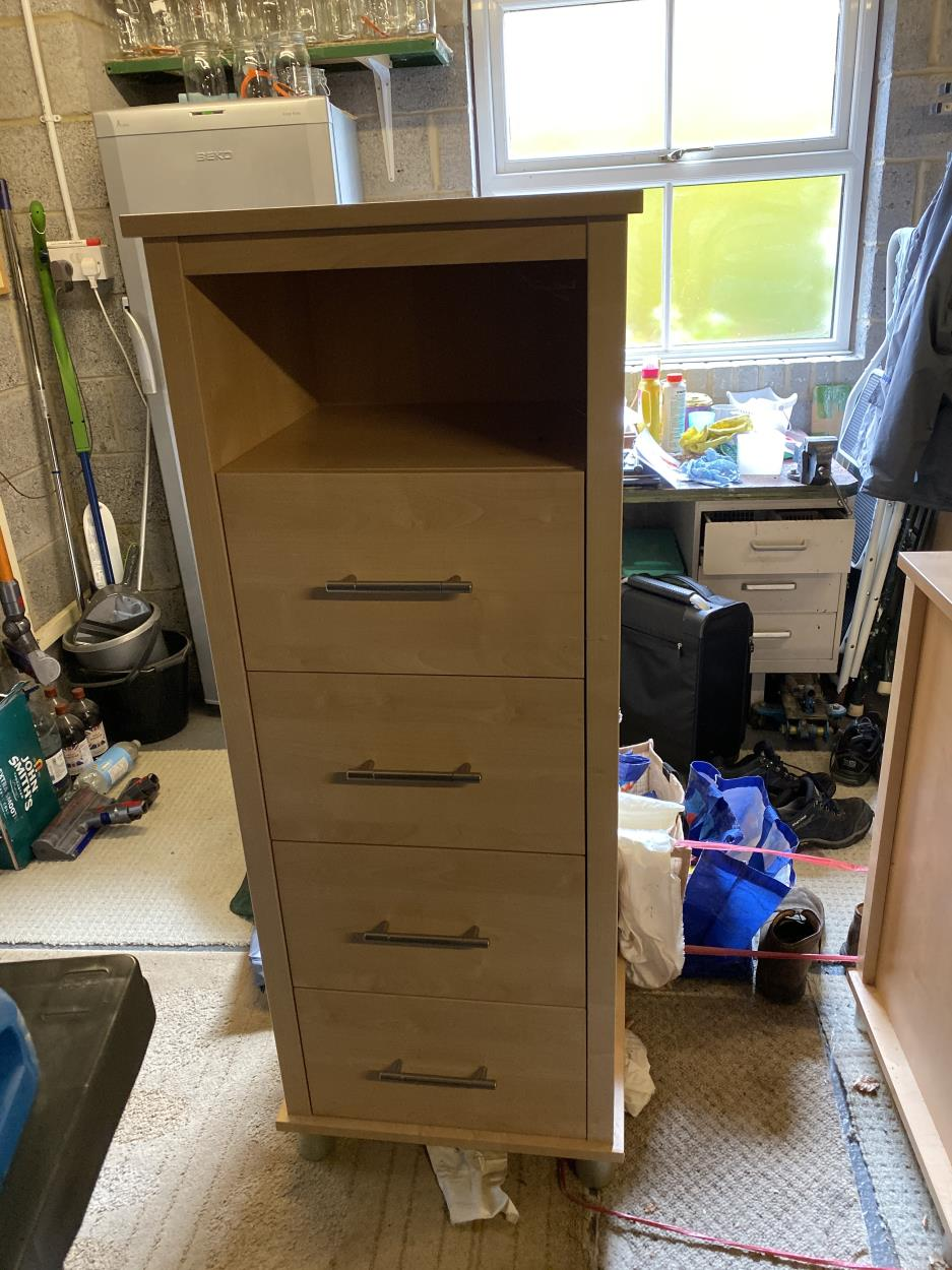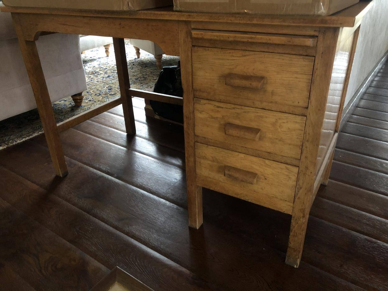 This listing is for a desk that is broken down into 4 parts consisting of table top, centre drawer and the two drawer columns. There are also some small boxes and bags as well as some framed photos (from what i can recall as its been a while since i last visited my storage room). I will answer questions as best as i possibly can