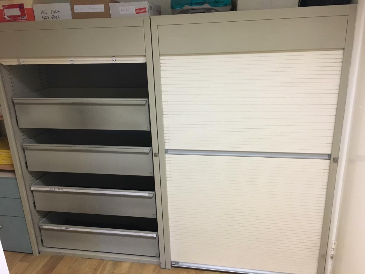 2 metal filing cabinets with pullout drawers for patient cards