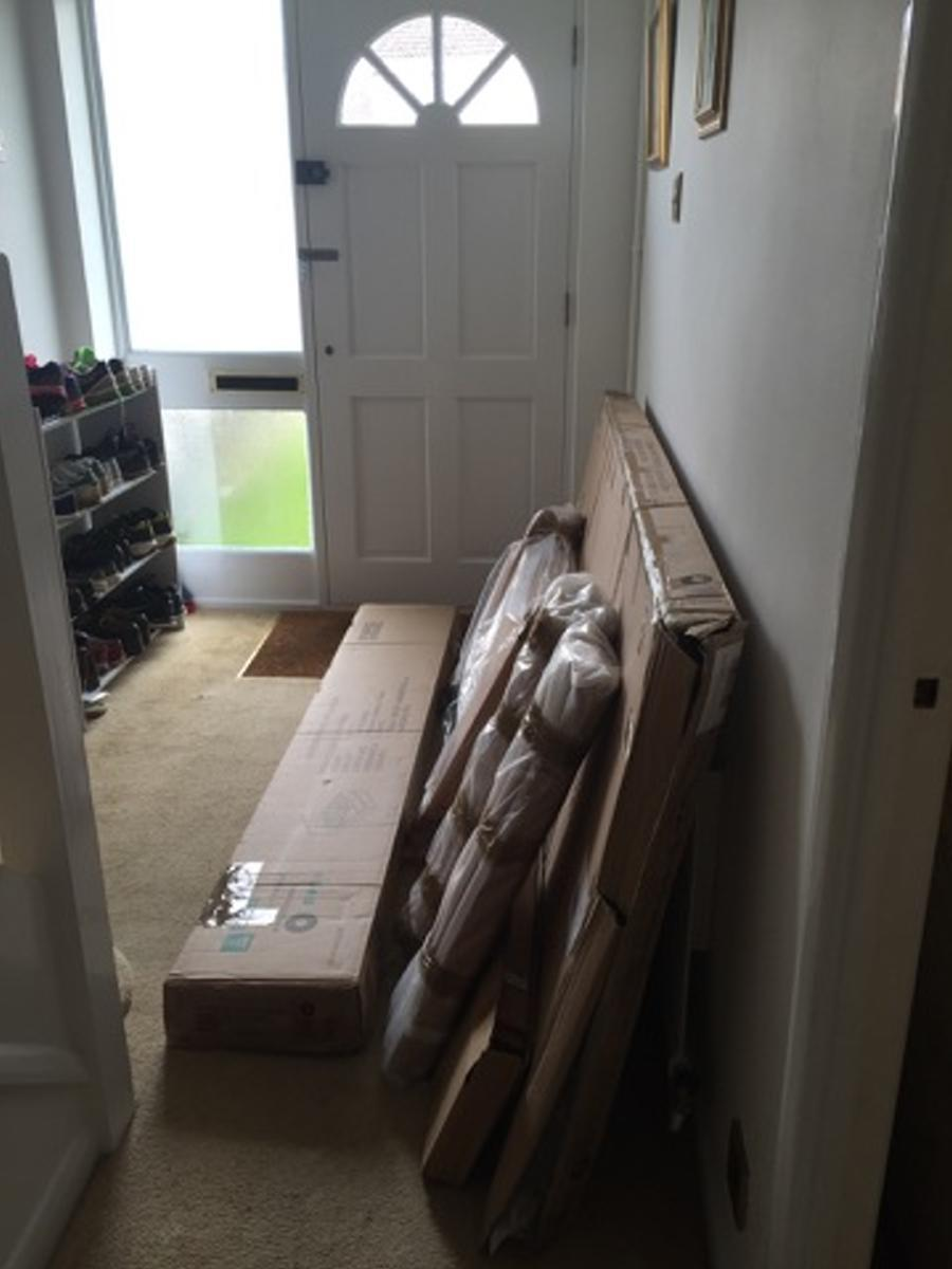 Pickup from inside a residential property, items are already flat packed and ready for transporting. Delivery to ground floor of a residential address.