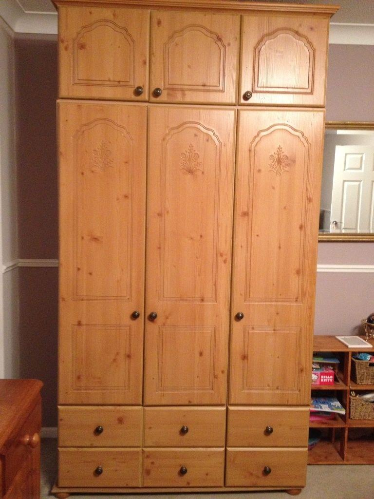 3 door wardrobe, detachable 3 door box section on top (2mx0.6mx0.6m). (Whole set is in two parts). Very similar to attched picture but not exactly the same model. Approx dimensions and weight as listed. Will probably need 2 people to load / remove from initial property. I can help unload at delivery address.
