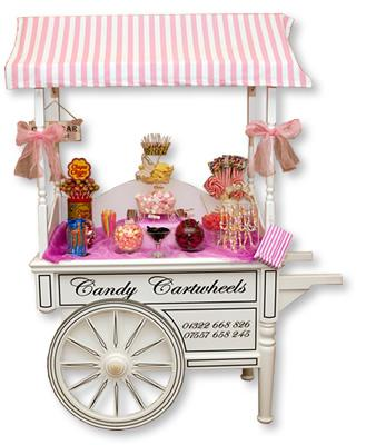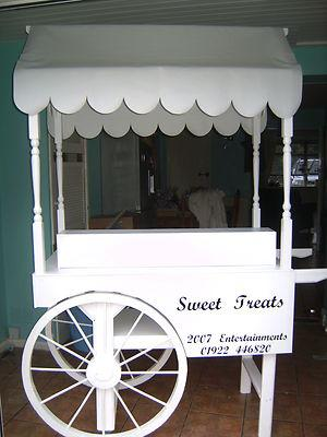 The handmade candy cart is wooden. The picture is not the actual cart but a similar type. (sorry. no sweeties!) It could be stacked on top of something else if it was securely stacked and packed in. The vendors are going to bubble-wrap it. It's costing £550. They tell us that Parcel Force trashed one of their carts. We can collect the candy cart from a depot nearby if delivery to our house is a problem.
