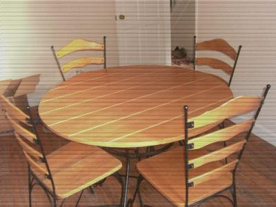 I have already got a winning bid on this item, which is a table and 4 chairs made of wood and wrought iron. I have only estimated the weight based on the weight of a chair I currently own multiplied by 10 (to represent 4 chairs and a table) - this is NOT accurate.