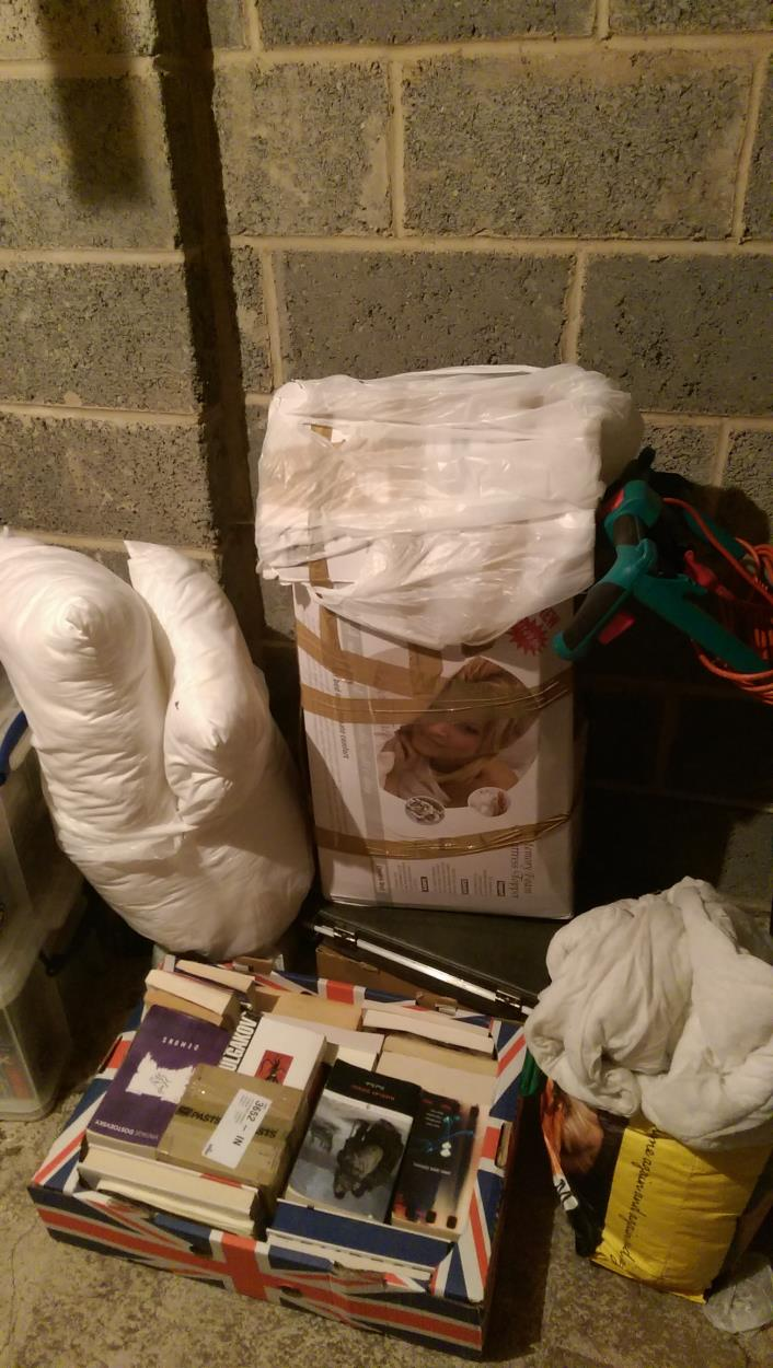 Additional stuff are 6 rolls of wall paper and shoe rack