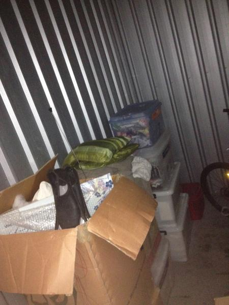 ground floor flat, 3 small boxes contain clothes, shoes, books. Larger boxes contains a tv, blanket and speakers