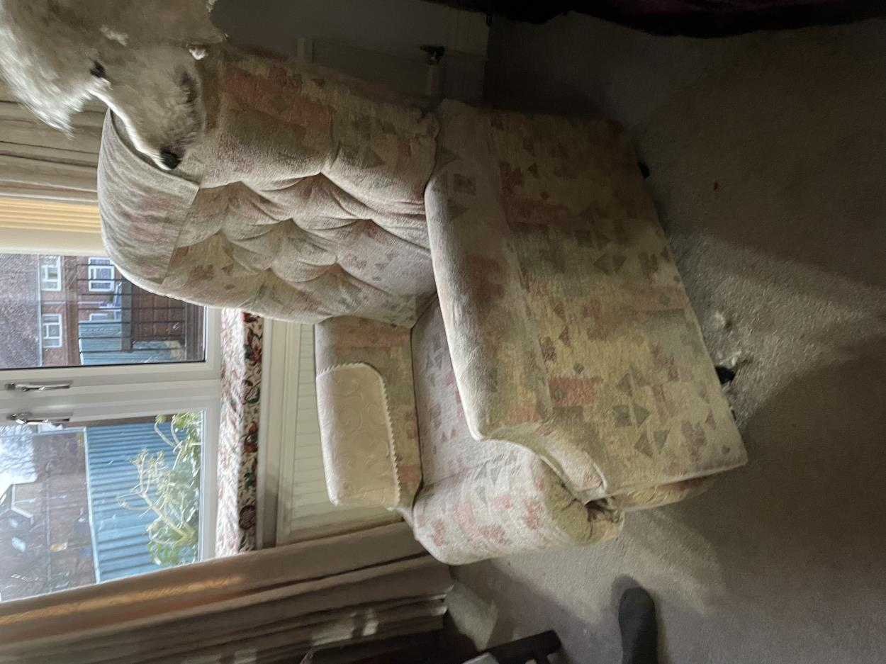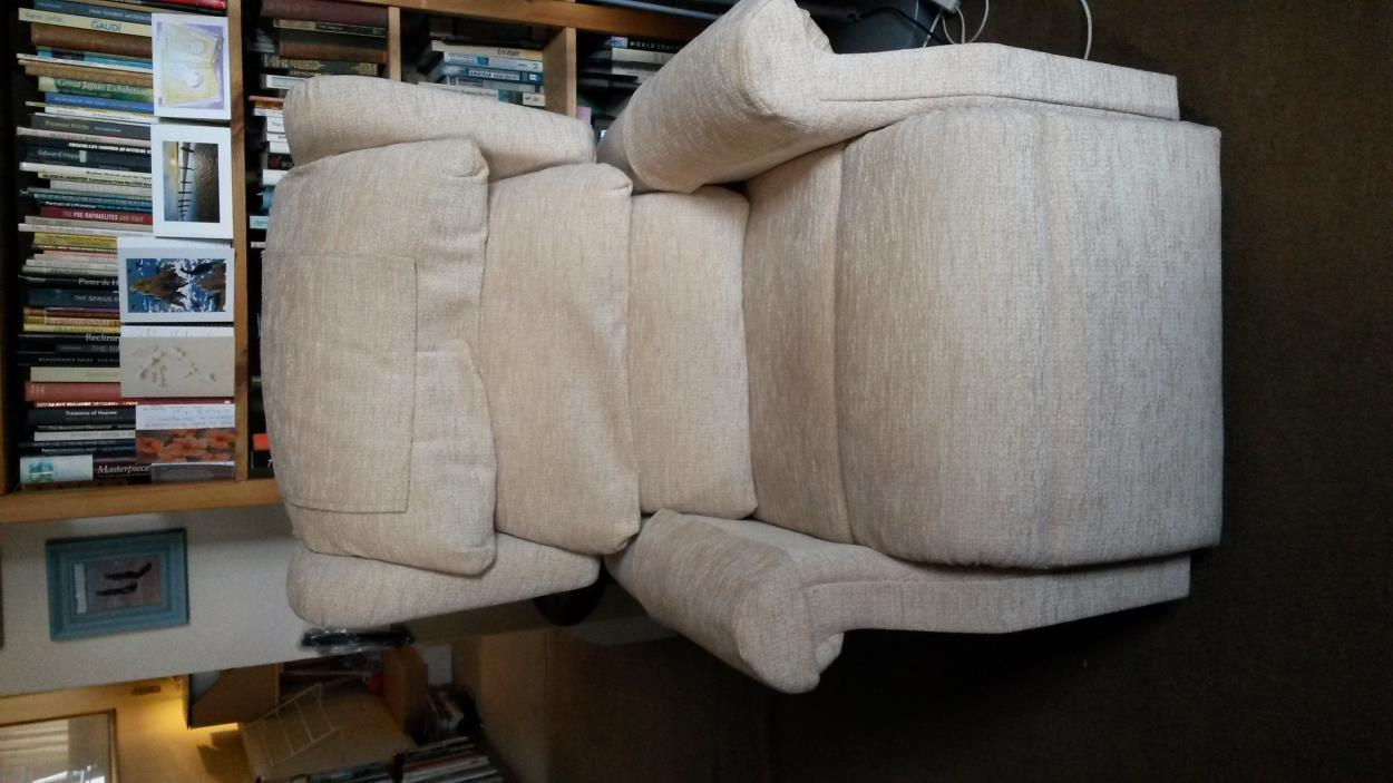 This is a 'Lift and Recline Cosi Chair'. The back will need to be removed to get it out of the house (6 bolts), and replaced and reattached at the destination. The weight is an estimate - it's very heavy.