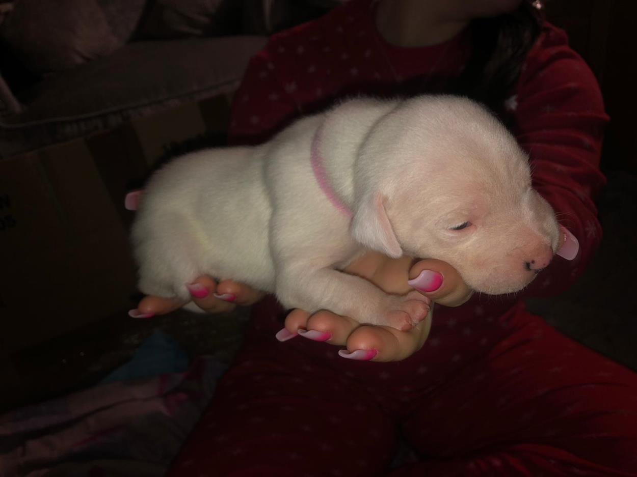 Adorable full white full staffy female puppy - LAC